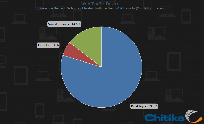 По наблюдениям Chitika, доля мобильного трафика возрастает в вечерние часы, когда работающие за десктопами отрываются от своих столов и перебираются на диван с телефоном или iPad в руках.